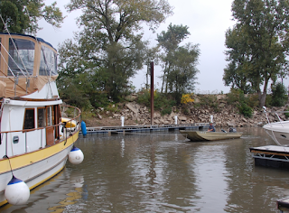 After borrowing the courtesy car to get a few items from the store, we were ready on Monday to travel on down the Illinois River. We got in and out of the Starved Rock lock really fast. The cruise was relaxing and we enjoyed the sites. We can see that fall is arriving. And look at those Asian carp jumping!!!